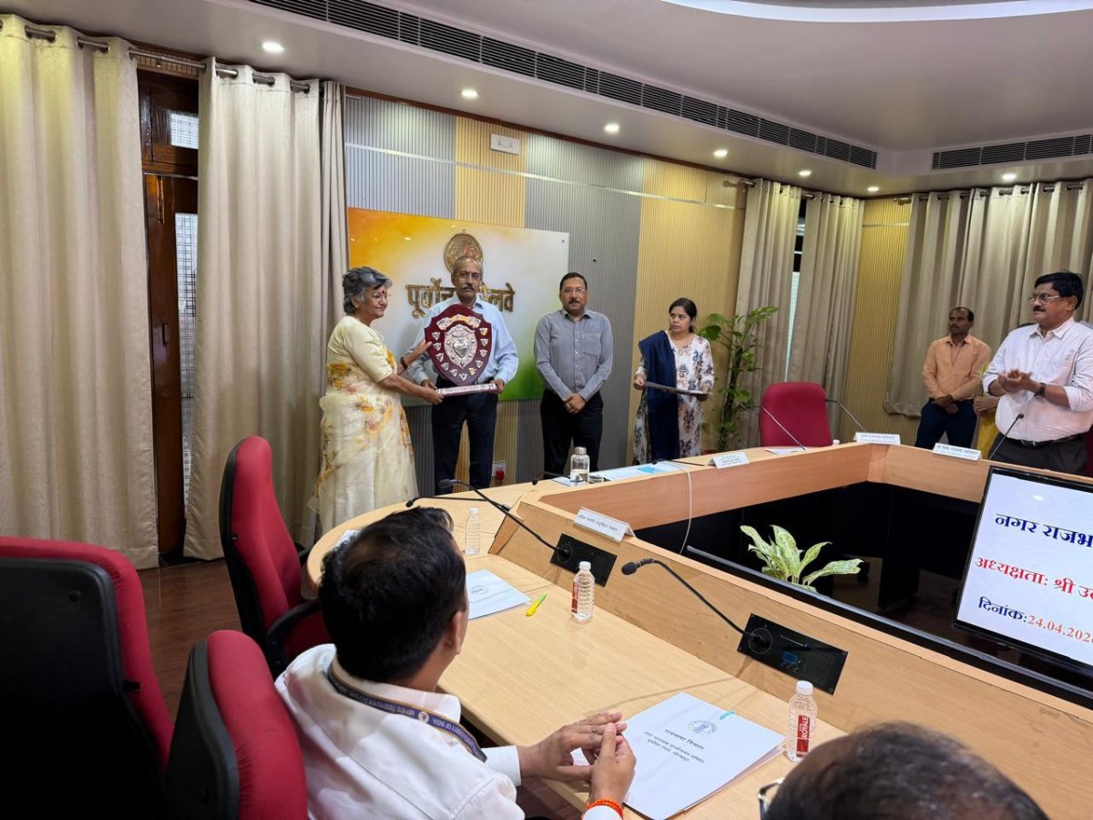 Rolling Vaijayanti Shield at the Nagar Rajbhasha Karyanvayan Samiti (Gorakhpur) half-yearly meeting on 24.04.2026